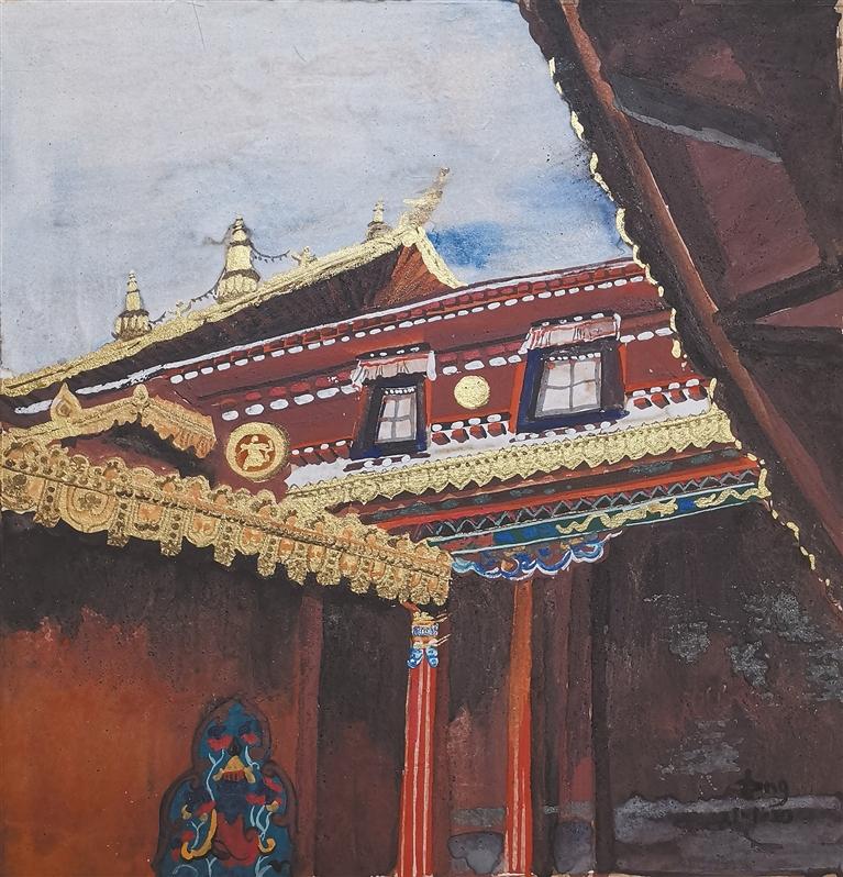 圖為畫作藏式建筑一角。