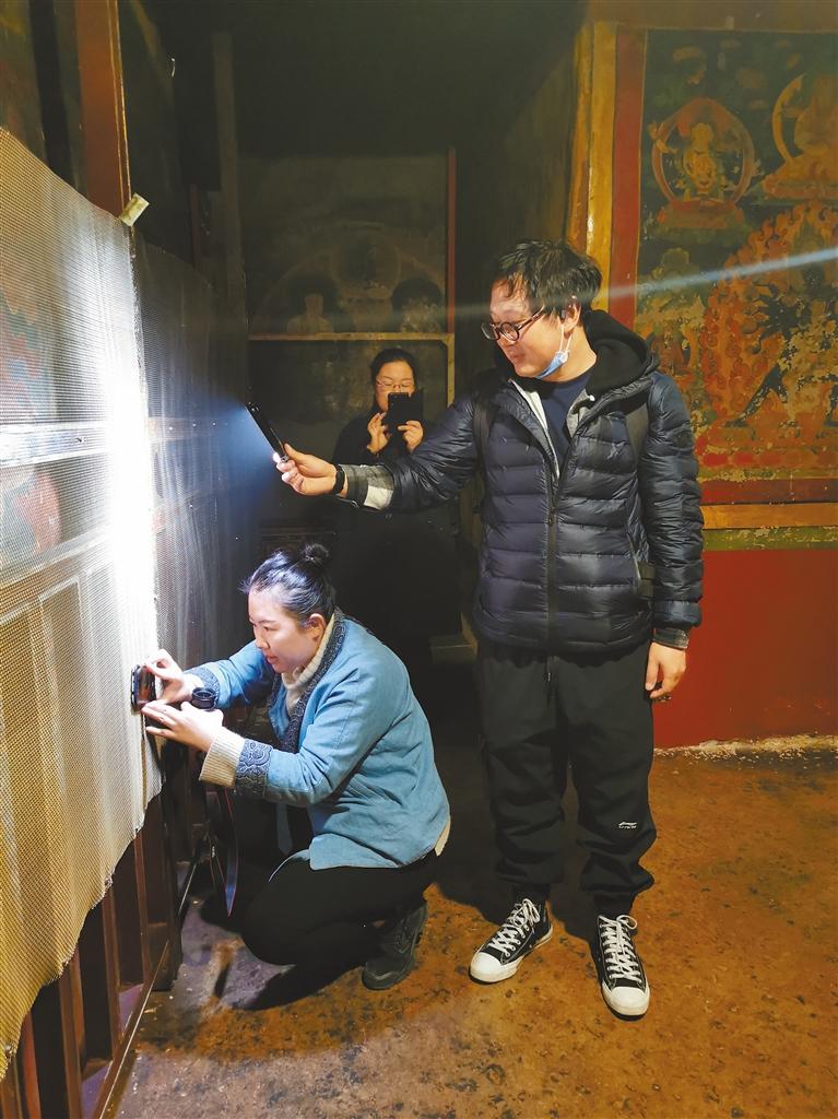 圖為劉曉彤(左一)在辨認(rèn)壁畫內(nèi)容。