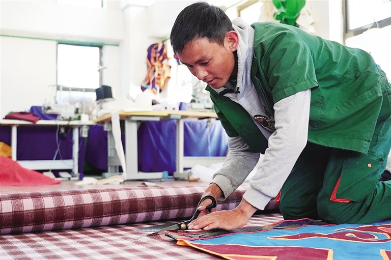 巴桑達瓦嫻熟地裁著布料。圖由山南融媒提供