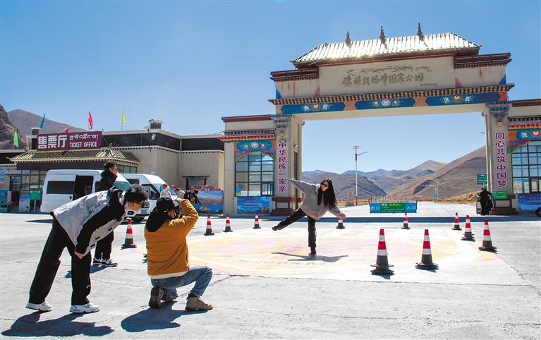 圖為游客在珠峰北大門打卡拍照。記者 旦增嘎瓦 扎西頓珠 攝