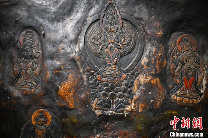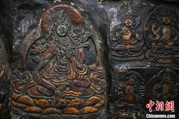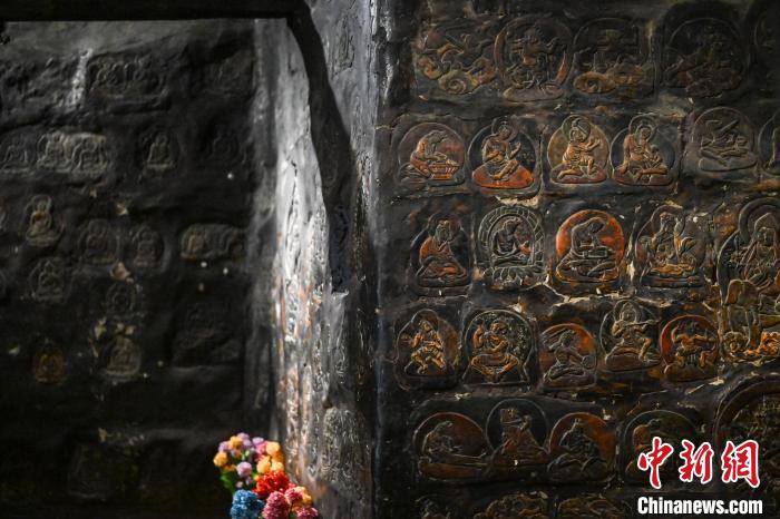 4月27日,記者探訪了當雄縣貢堂鄉(xiāng)沖嘎爾村康馬寺的瑪尼拉康。瑪尼拉康是該寺除修行洞之外的早期宗教活動場所,也是寺院里最古老的建筑。這里保存著令人驚嘆的石刻造像墻,這些石刻距今已有三百年歷史?,斈崂低庥^普通,但其室內六面墻上整齊地貼滿了浮雕石刻板,共計1213塊(僅一塊缺失)。石刻內容豐富,涵蓋了藏傳佛教各宗各派的本尊、祖師、佛母菩薩等,造型多姿多樣,線條清晰流暢。這處石刻造像墻對于研究西藏傳統(tǒng)雕刻、藏傳佛教以及歷史具有重大意義。中新社記者 貢嘎來松 攝