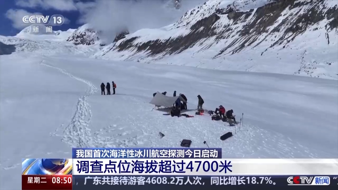 總臺(tái)央視記者 楊瀟:我現(xiàn)在所在的位置是西藏昌都八宿縣的然烏鎮(zhèn)。再過一會(huì),我就會(huì)隨著調(diào)查隊(duì)一同出發(fā)前往距離這里30公里的仁龍巴冰川,那里將是此次海洋性冰川航空探測的首個(gè)調(diào)查點(diǎn)。