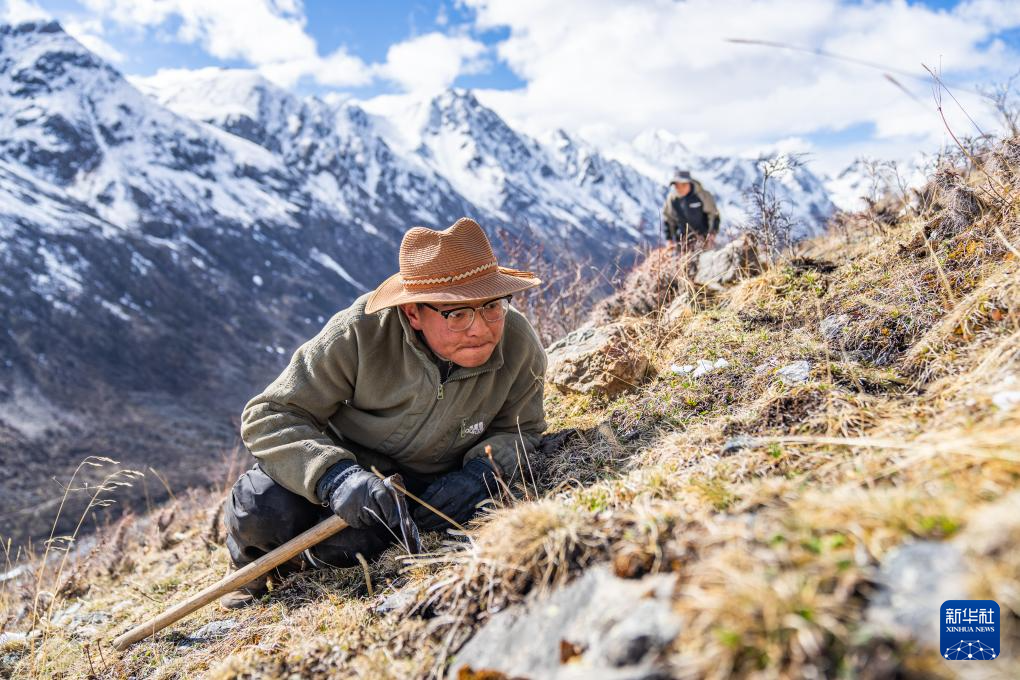 在那曲市索縣西昌鄉(xiāng),牧民在尋覓蟲草(5月18日攝)。新華社記者 丁增尼達 攝