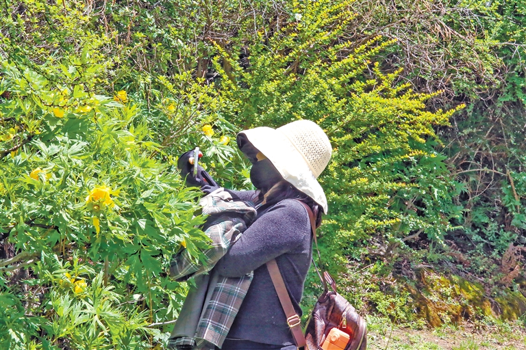 游客在用手機(jī)拍攝米林黃牡丹。記者 謝筱純 劉楓 攝