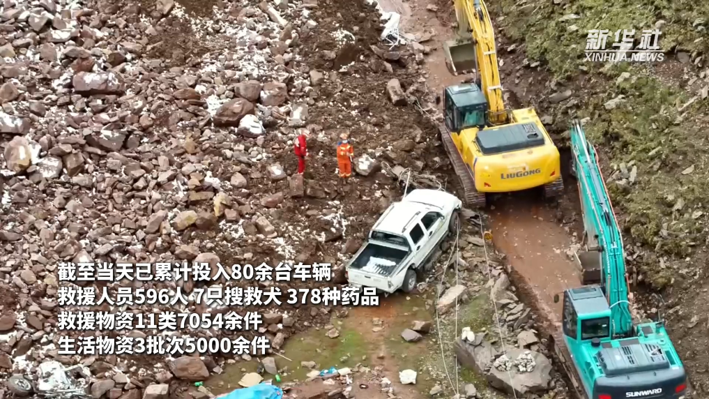 事件發(fā)生后,各方救援力量趕赴現(xiàn)場,開展救援工作。6月5日上午6時(shí),搜救挖掘繼續(xù)開展,截至5日18時(shí)已累計(jì)投入80余臺車輛、596人、7只搜救犬、378種藥品、救援物資11類7054余件、生活物資3批次5000余件。清理堆積體約5000方,挖掘出2輛汽車,搜尋到3名遇難者遺體,未搜尋到7名失聯(lián)人員。
