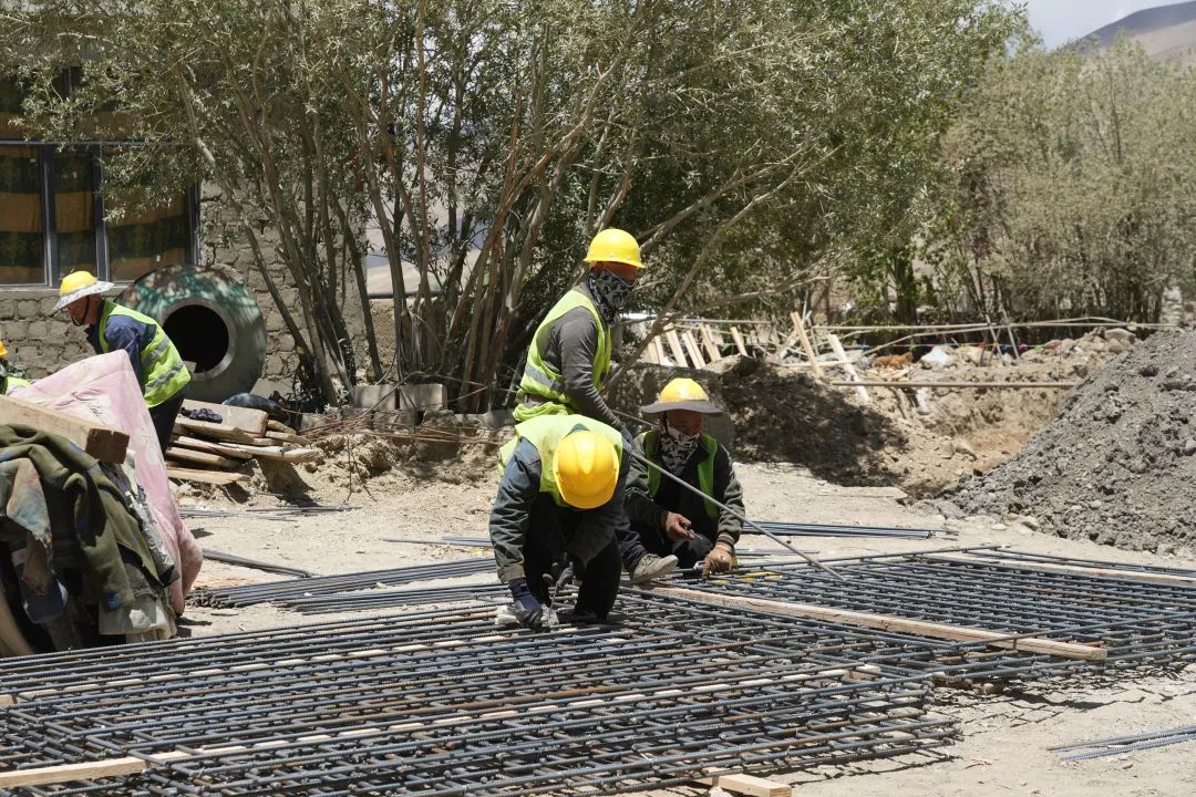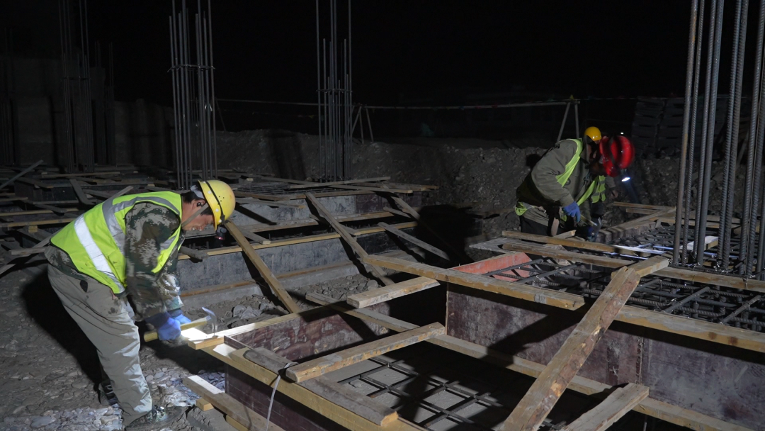 當夜幕籠罩村莊,大風呼嘯,旺加仍未歸家。他戴上安全帽,出現(xiàn)在燈火通明的工地。機械轟鳴,人聲交織。旺加仔細巡視基坑、鋼筋,履行監(jiān)督之責;順手遞工具,用帶著藏語腔調的漢語講著接地氣的笑話驅散疲憊。