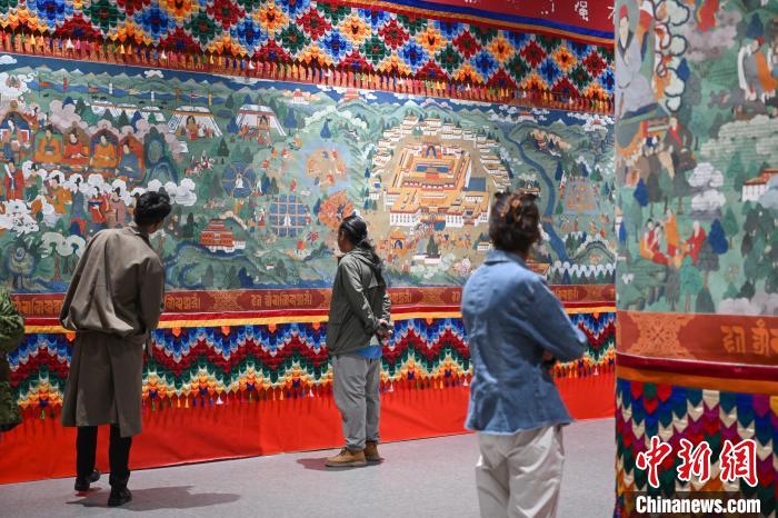 圖為民眾參觀唐卡《吐蕃贊普世系大唐卡金子明鏡》。貢嘎來(lái)松 攝