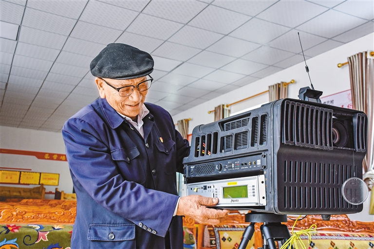 “電影放完了,大家都還舍不得走,有些村民開玩笑,假意不讓我?guī)ё叻庞硻C,請求我放第二場、第三場。他們喜歡看,我也樂意放,多的時候,一天要連續(xù)放四場。其中最受歡迎的就屬《南征北戰(zhàn)》《戰(zhàn)上?!愤@類戰(zhàn)斗片、抗戰(zhàn)片了。”說話間,仁真平措黝黑的臉頰紅暈泛開來,笑容里滿是對往昔的回憶。