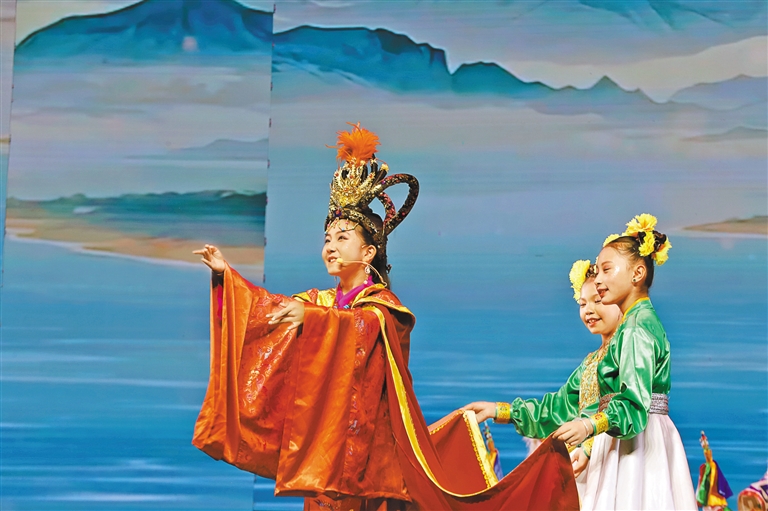 舞臺(tái)中央,12歲的其美卓嘎身著錦繡華服,以清亮唱腔和靈動(dòng)演繹,將文成公主的溫婉堅(jiān)毅展現(xiàn)得淋漓盡致?!爱?dāng)我穿上戲服、唱起‘漢藏情誼潔如璧’時(shí),仿佛真的穿越到千年前的和親之路?!毖莩鼋Y(jié)束后,小姑娘眼中閃爍著興奮的光芒,“原來民族團(tuán)結(jié)的故事,就藏在這些古老而動(dòng)人的戲文里?!逼涓赣H倫珠難掩自豪:“文成公主促進(jìn)了漢藏交融,女兒能表演這個(gè)節(jié)目,用藏戲詮釋民族團(tuán)結(jié),是我們?nèi)业尿湴?!?/p>
