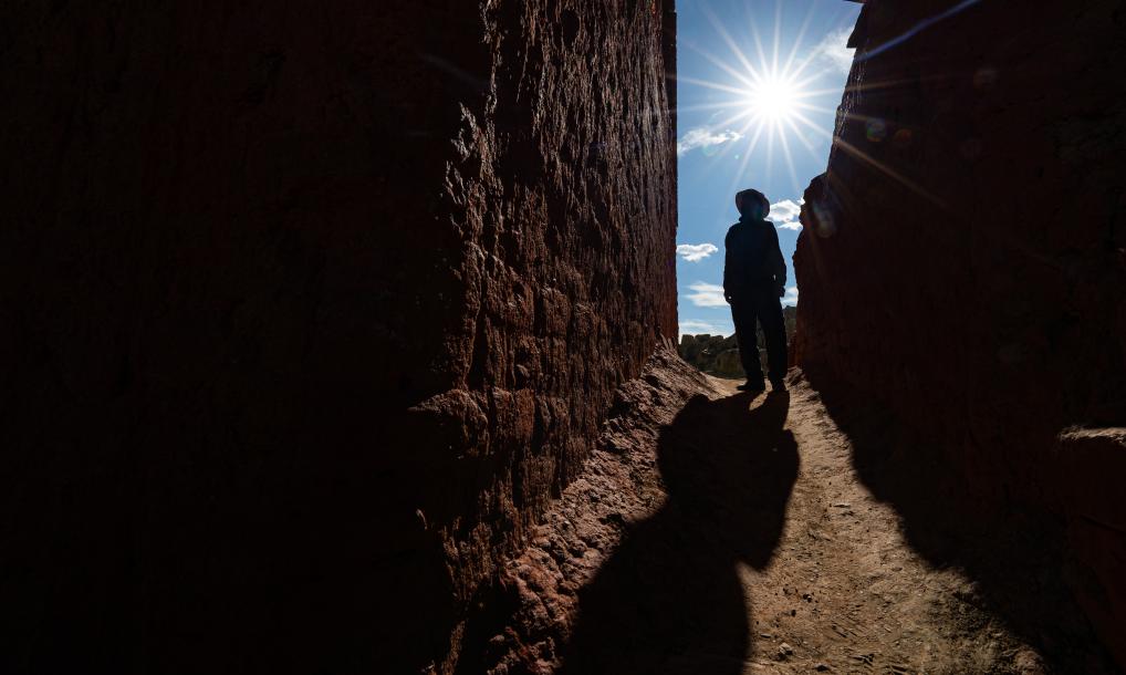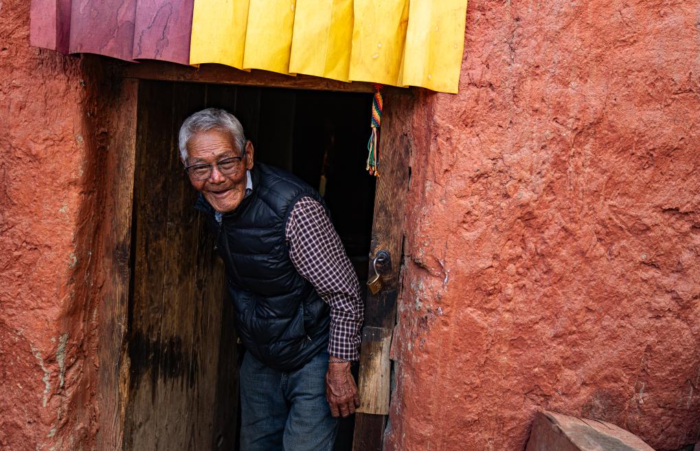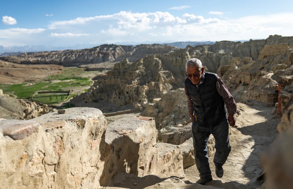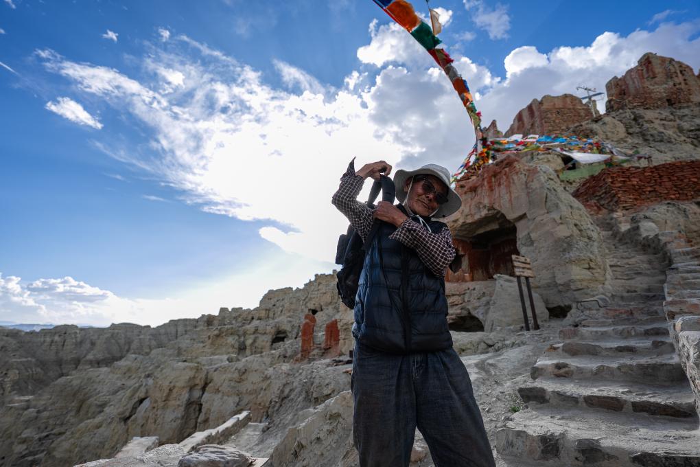 仁增旺扎巡查各個(gè)石窟,這是他多年來(lái)的習(xí)慣(2023年5月26日攝)。