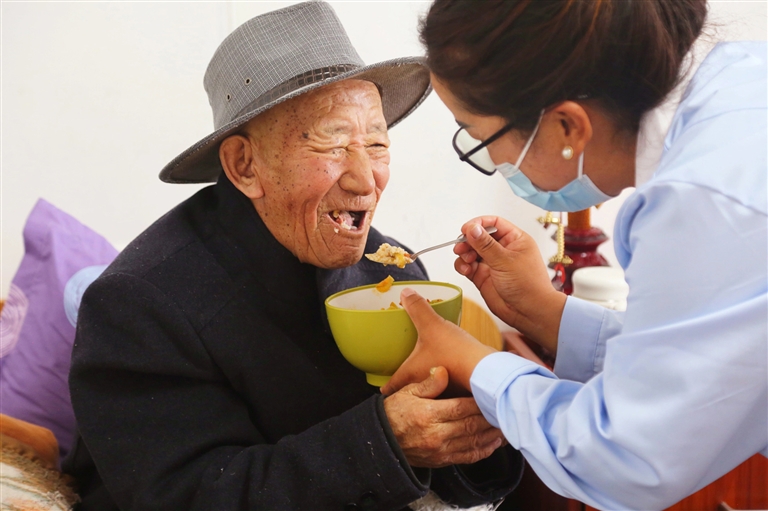 陽光穿過明凈的玻璃窗,溫柔地灑在80歲失明老人拉巴次仁手中的木碗上。他捧著熱騰騰的飯菜,幸福的笑容在臉上肆意綻放:“在這里,一日三餐有人端到跟前,臟衣服剛換下就有人洗凈送回,生病也不愁沒人管。”老人言語間滿是對(duì)生活的感激。
