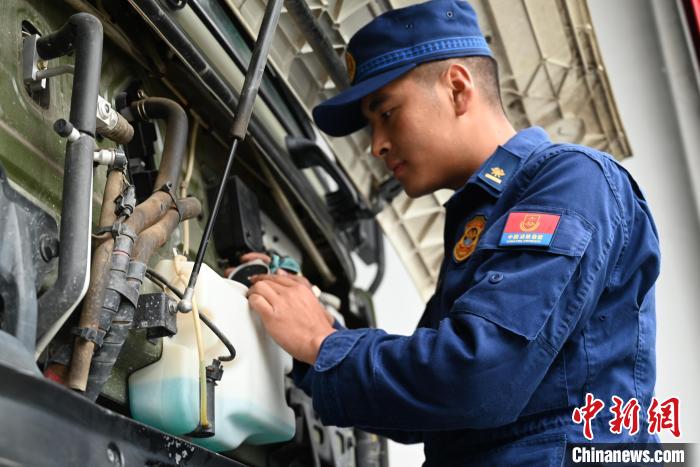 圖為消防員正在保養(yǎng)車輛。西藏林芝市森林消防支隊(duì)供圖