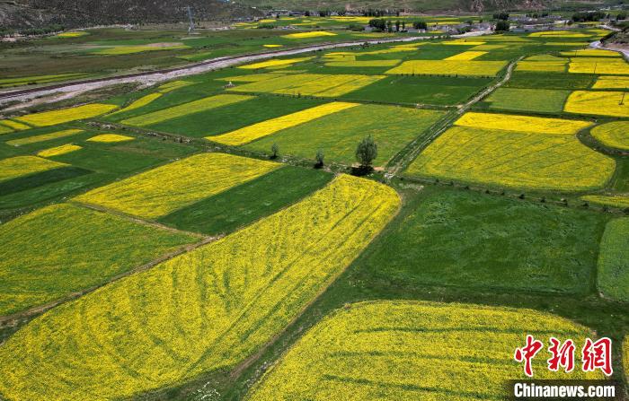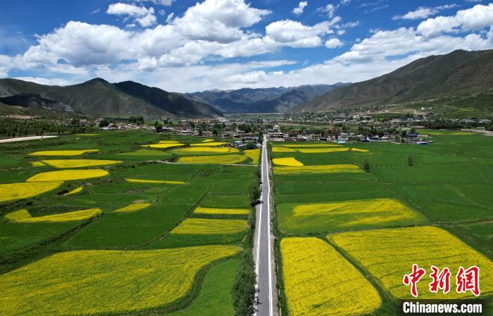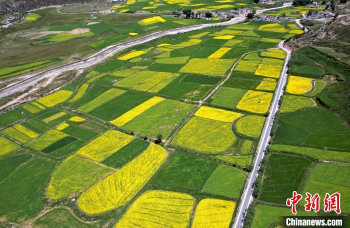 7月5日,西藏拉薩市墨竹工卡縣油菜花盛放。無人機航拍視角下,一塊塊金黃的油菜花田猶如大地的調(diào)色板,風(fēng)光宜人。(無人機照片)中新社記者 李林 攝
