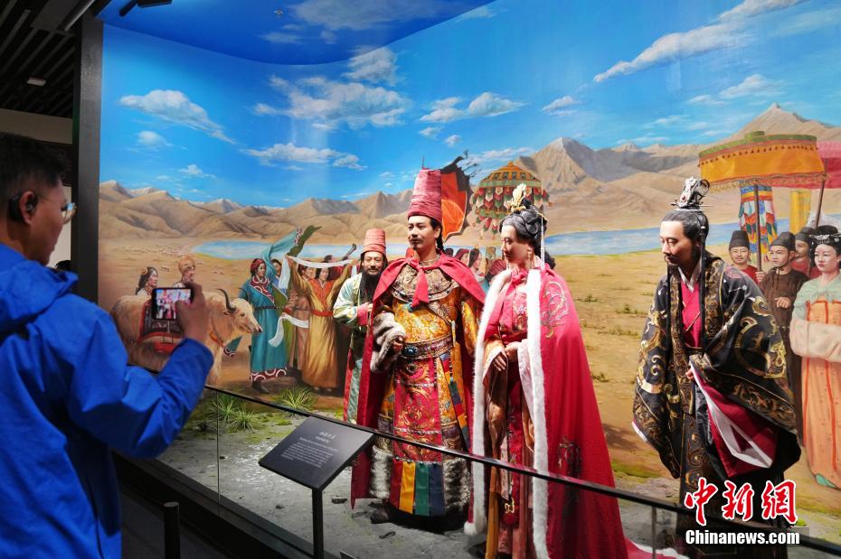 7月15日,在位于西藏拉薩的西藏博物館,文成公主進(jìn)藏的《柏海迎親》塑像吸引觀眾。據(jù)了解,西藏博物館設(shè)有基本陳列《雪域長(zhǎng)歌—西藏歷史文化展》《離太陽(yáng)最近的人—西藏民俗文化展》,充分展示西藏地區(qū)歷史發(fā)展進(jìn)程與文化面貌。中新社記者 張祥毅 攝