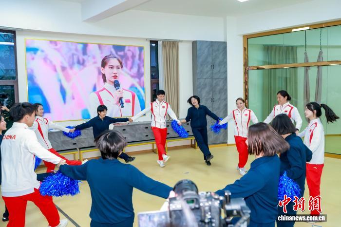 圖為“決勝巴黎·綻放奧運(yùn)–––奧運(yùn)冠軍面對(duì)面”巡回宣講活動(dòng)西藏站走進(jìn)軍營(yíng)與女官兵歡樂(lè)共舞現(xiàn)場(chǎng)。活動(dòng)方 供圖