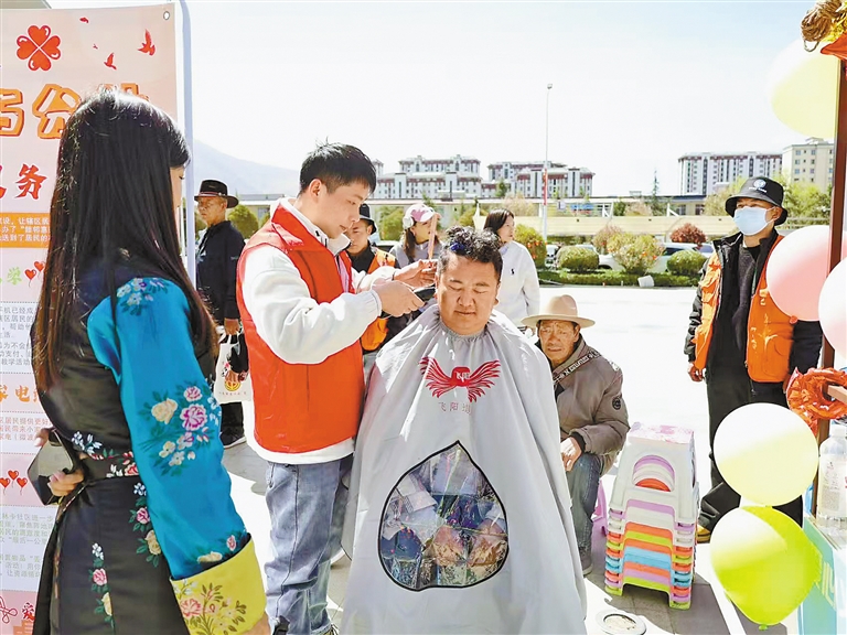 社區(qū)能人為群眾免費理發(fā)?!?/p>