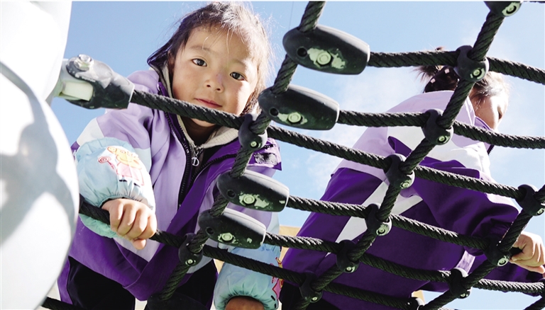那曲市色尼區(qū)第五幼兒園的學(xué)生正在玩耍。 圖由吳小聰提供