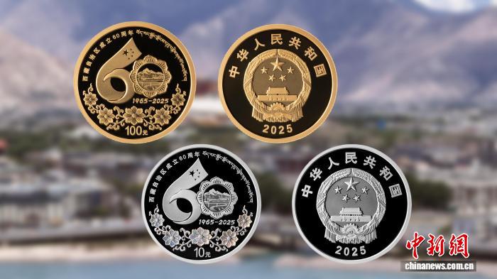 圖為西藏自治區(qū)成立60周年金銀紀(jì)念幣樣式。中國(guó)人民銀行西藏分行供圖