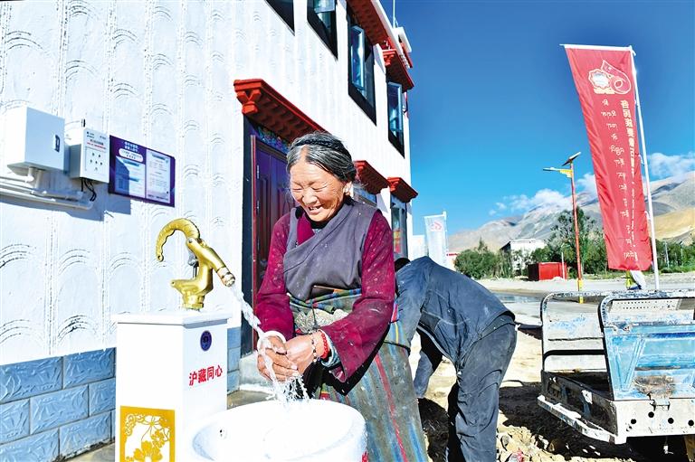 定日縣森嘎村首批入住村民在家門口用上了自來(lái)水。記者 王敏 攝