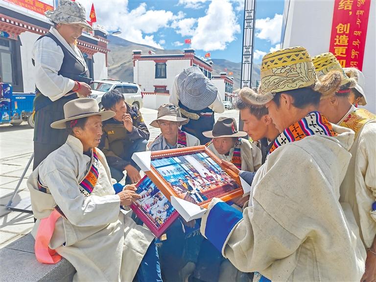群眾在昂仁縣分會(huì)場(chǎng)拍照留念。記者 馬曉艷 攝