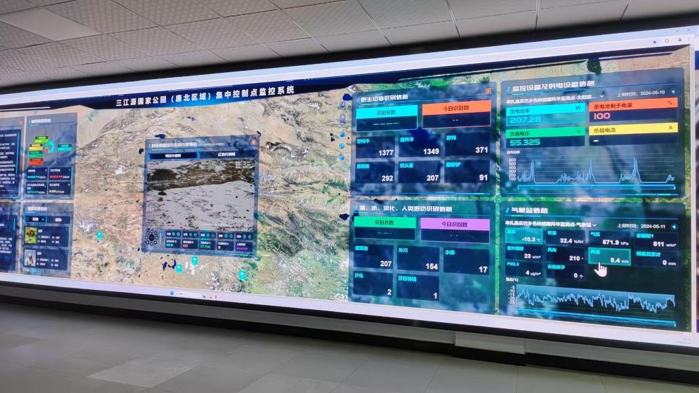 在西藏那曲市三江源國(guó)家公園(唐北區(qū)域)監(jiān)測(cè)中心,巨大的電子屏幕上交替呈現(xiàn)著無(wú)人區(qū)不同角落的生動(dòng)畫(huà)面:藏羚羊群在冰川腳下悠閑覓食;藏野驢在草原上緩步前行;雪豹的身影在某處巖壁間一閃而過(guò)。每一幅畫(huà)面都配有精準(zhǔn)的物種識(shí)別數(shù)據(jù)和地理坐標(biāo),將生態(tài)狀況轉(zhuǎn)化為清晰可讀的數(shù)字信息。