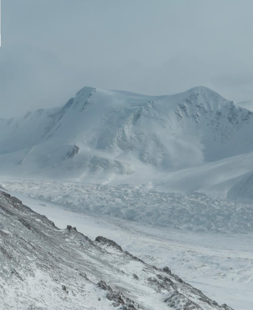 這是2024年2月2日拍攝的格拉丹東峰腳下的姜根迪如冰川。(無(wú)人機(jī)照片)。新華社記者 晉美多吉 攝