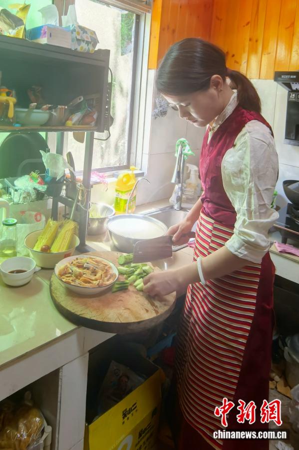 這種交融,也悄然浸潤著兩個女兒的成長。家里的餐桌永遠(yuǎn)擺著酥油茶和豆?jié){,藏裝與漢服常一起晾在陽臺。藏歷新年,丈夫教女兒插青稞穗;春節(jié),她帶女兒貼春聯(lián)。幼兒園讓畫“最喜歡的場景”時,大女兒畫了一群不同民族的孩子圍著石榴樹拉手笑:“這是墨脫,我們都是一家人,像石榴籽一樣!”