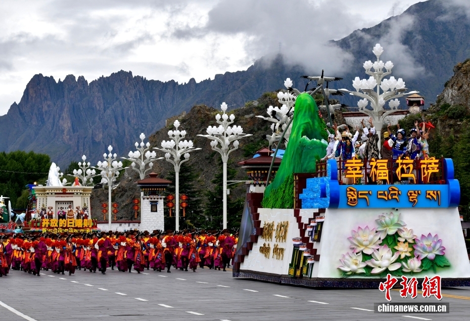 8月21日,西藏自治區(qū)成立60周年慶祝大會(huì)在拉薩布達(dá)拉宮廣場(chǎng)舉行。圖為慶祝大會(huì)舉行盛大的群眾游行。中新社記者 李林 攝