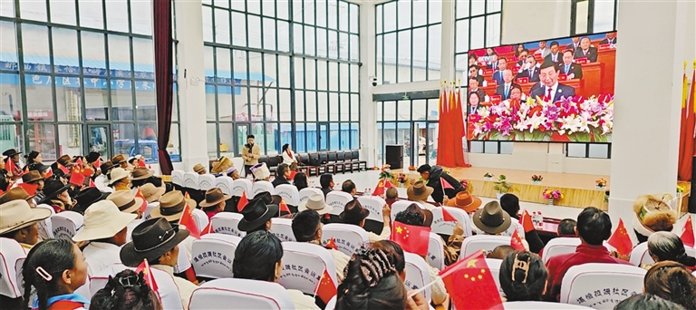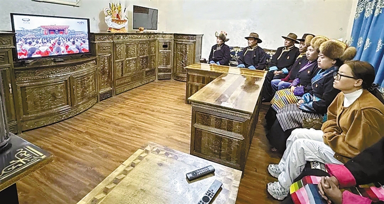 海拔5373米的浪卡子縣普瑪江塘鄉(xiāng)干部群眾通過多種形式收聽收看大會(huì)盛況,共同見證這一重要的歷史時(shí)刻。普瑪江塘鄉(xiāng)黨委書記多吉旺久說:“60年來,普瑪江塘鄉(xiāng)從過去靠天吃飯到如今靠科技吃飯,巨大的變化離不開黨中央的親切關(guān)懷和黨的民族政策,我們一定銘記黨的恩情,永遠(yuǎn)聽黨話、感黨恩、跟黨走。”