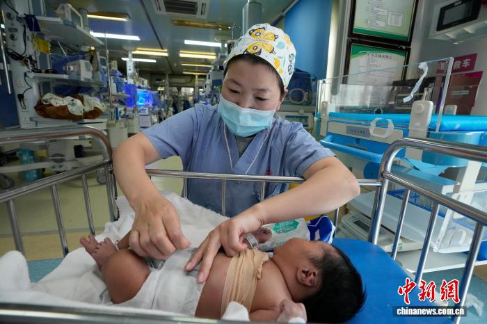 9月5日,西藏阜康醫(yī)院新生兒科內(nèi),護(hù)士正在安撫新生兒。西藏自治區(qū)成立60周年西藏婦女兒童事業(yè)發(fā)展情況發(fā)布會(huì)5日在拉薩召開。發(fā)布會(huì)介紹,西藏孕產(chǎn)婦死亡率、嬰兒死亡率分別降至34.94/10萬(wàn)、4.32‰,60年來,西藏婦女兒童衛(wèi)生健康水平顯著提高。中新社記者 李林 攝