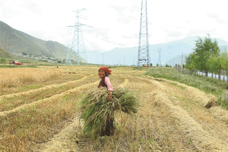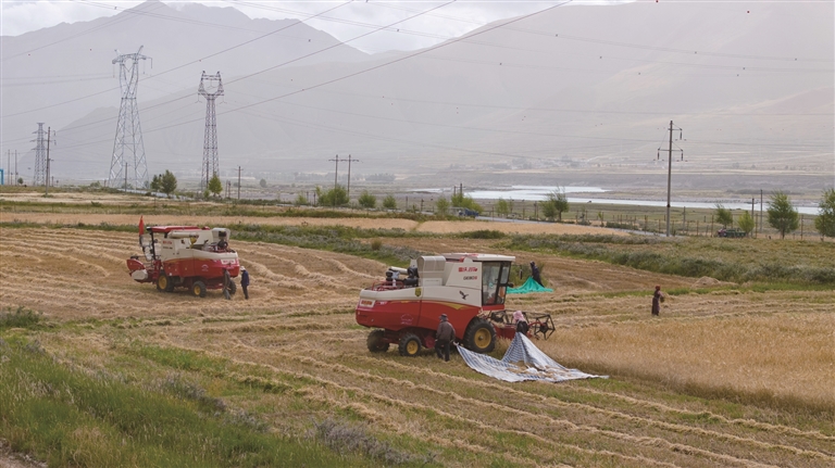 “我家共有37畝農(nóng)田,10畝種小油菜,27畝種青稞?!必暩骂D玉說(shuō),小油菜在前兩天已全部收割完畢,每畝產(chǎn)量達(dá)300多斤。從今天起,他們開始收割青稞。家里有4個(gè)勞動(dòng)力,要是放在以前,37畝地的秋收得全家上陣忙一個(gè)多月,現(xiàn)在有了機(jī)械化作業(yè),短短幾天就能完成所有收割工作,既省時(shí)又省力。