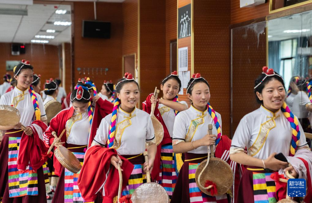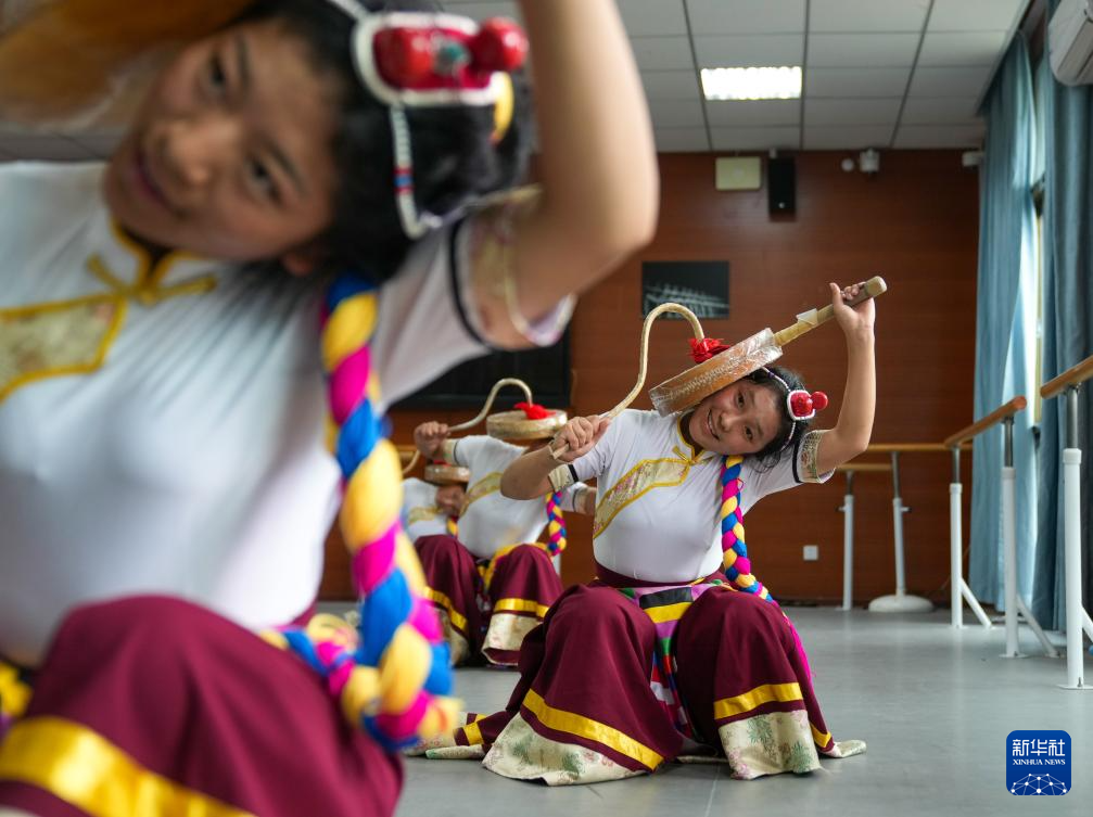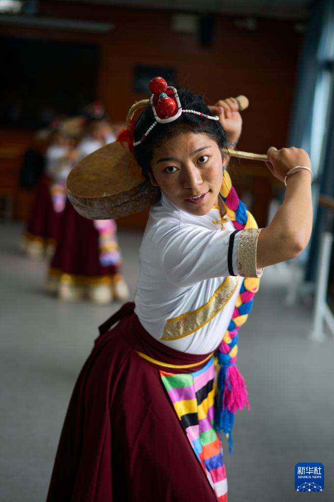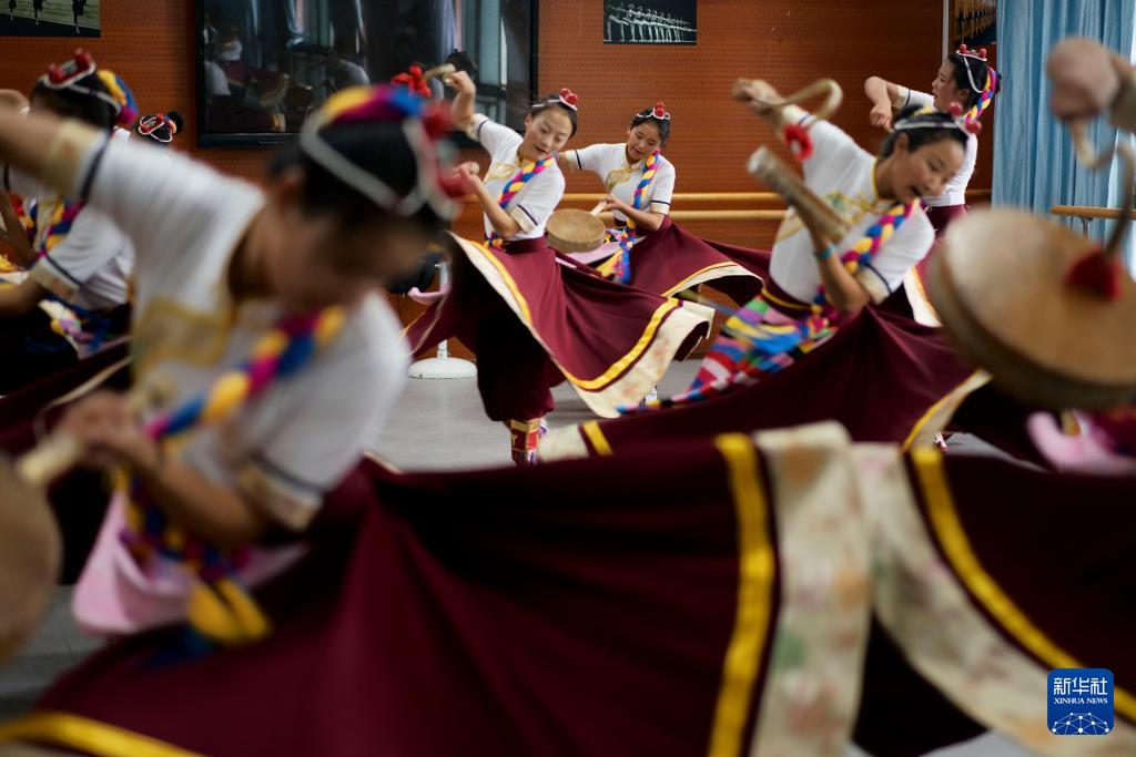 9月9日,在拉薩市第二中等職業(yè)技術(shù)學校,孩子們在練習熱巴舞。新華社記者 晉美多吉 攝