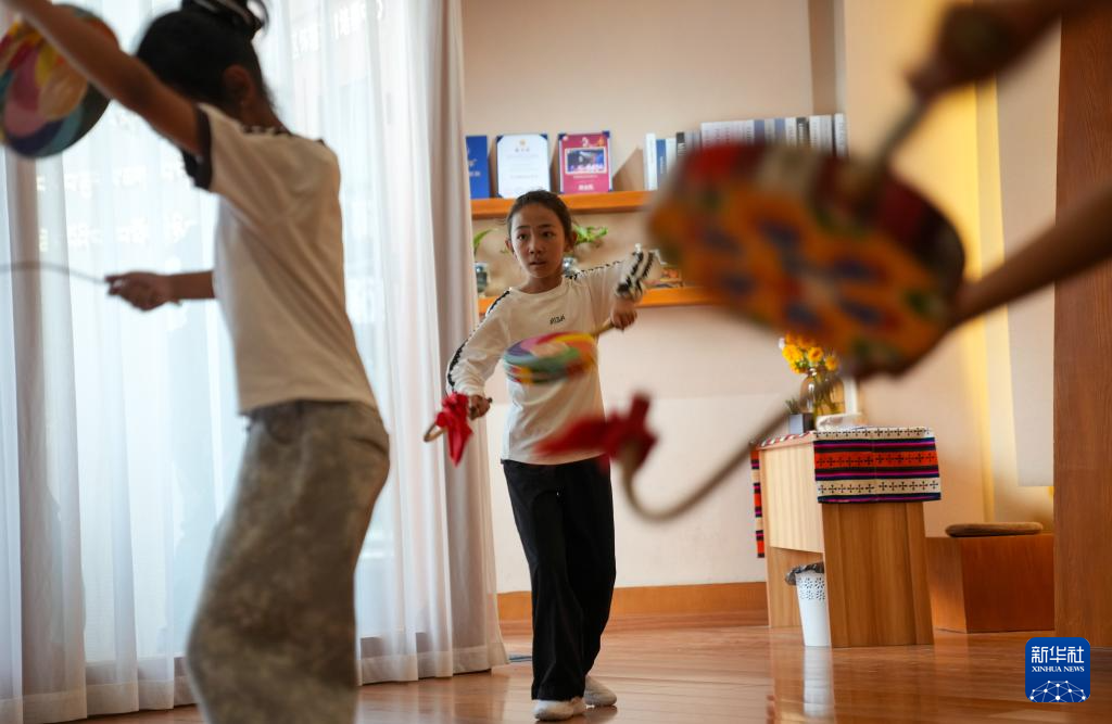 9月13日,在拉薩市塔耶梅朵美育培養(yǎng)中心,孩子們在練習熱巴舞。新華社記者 晉美多吉 攝