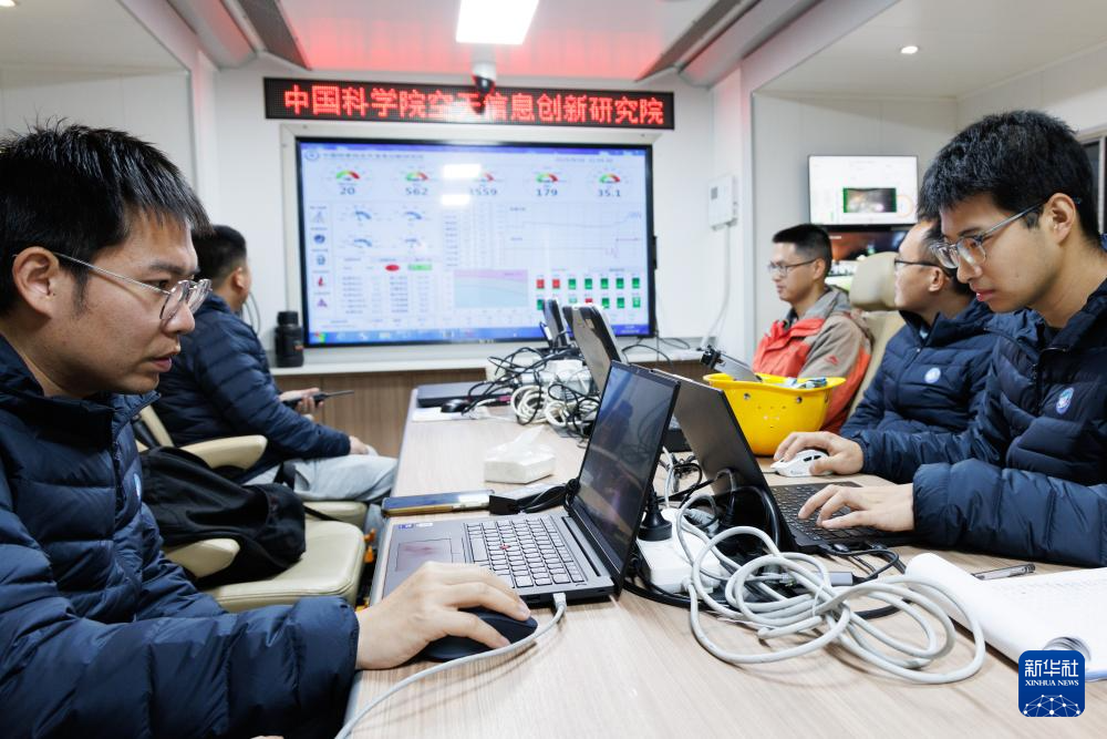 9月18日,“極目一號”浮空艇大氣觀測試驗現場控制室,科研人員在觀察試驗進展。新華社記者 金立旺 攝