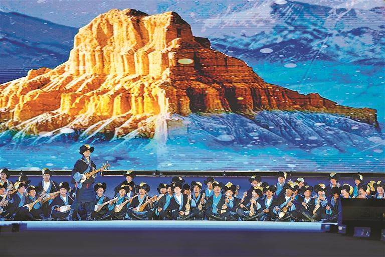開(kāi)幕式通過(guò)“線上直播+現(xiàn)場(chǎng)觀演”模式,為現(xiàn)場(chǎng)各界來(lái)賓、干部群眾及線上觀眾,呈現(xiàn)了一場(chǎng)內(nèi)容豐富、形式多元、內(nèi)涵深刻的視聽(tīng)盛宴。此次演出時(shí)長(zhǎng)約80分鐘,投入演職人員300余人次,共呈現(xiàn)13個(gè)特色節(jié)目。演出以弘揚(yáng)優(yōu)秀傳統(tǒng)文化和鑄牢中華民族共同體意識(shí)為基調(diào),大膽革新藝術(shù)表達(dá)形式,將“音、舞、詩(shī)、畫”巧妙融合,并鑲嵌濃郁的阿里地域文化元素,通過(guò)多元文化交融的舞臺(tái)敘事,生動(dòng)詮釋中華民族“多元一體、和諧共生”的深刻內(nèi)涵,實(shí)現(xiàn)歷史與人文的激情碰撞。