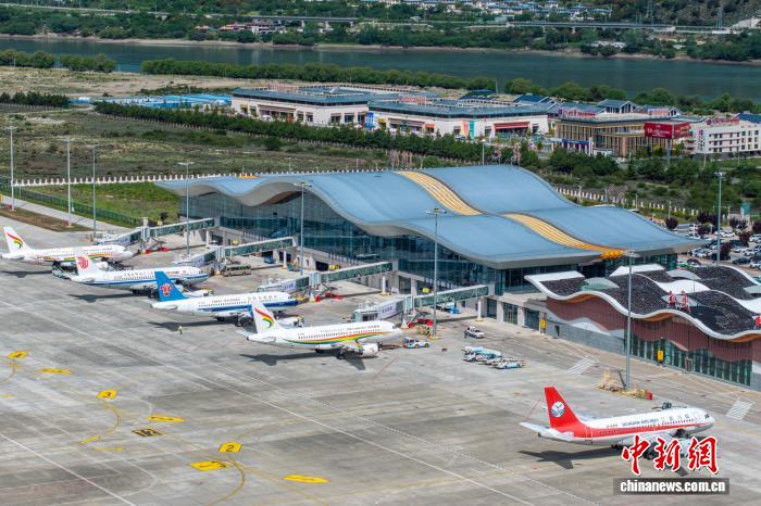 2025年6月,西藏林芝米林機(jī)場??亢桨?。該機(jī)場現(xiàn)運營15條航線,通達(dá)北京、成都及廣州等9座城市。(中國民用航空西藏自治區(qū)管理局供圖)