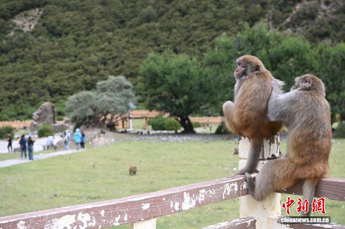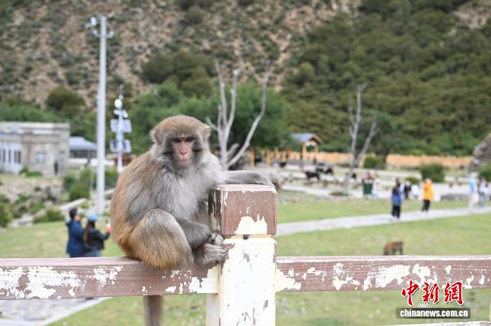 圖為林則村的林則生態(tài)文化旅游景區(qū)里的藏獼猴。中新社記者 貢嘎來(lái)松 攝