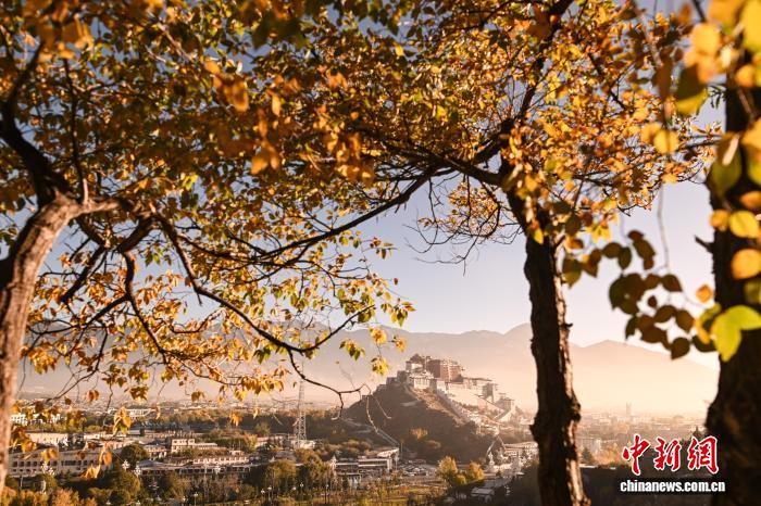 10月22日清晨,薄霧尚未散盡,西藏拉薩團結(jié)公園的黃葉與布達拉宮相映成趣,勾勒出高原秋日的獨特畫卷。中新社記者 貢嘎來松 攝