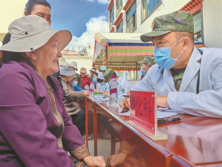 圖為次旦羅布在下鄉(xiāng)義診中問診。記者 文鳳 攝