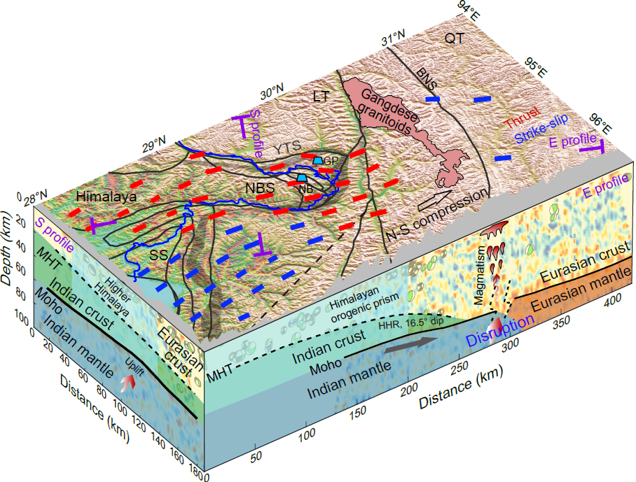 該發(fā)現(xiàn)不僅揭示了喜馬拉雅東端的地震活動特征,也為認(rèn)識整個喜馬拉雅造山帶的地震破裂行為與隆升機制提供了新視角。論文共同通訊作者李鴻儒博士表示:“下一步我們將聚焦整個喜馬拉雅山系的大型逆沖構(gòu)造系統(tǒng),深入揭示大陸碰撞如何控制地震孕育與高原生長?!?/p>