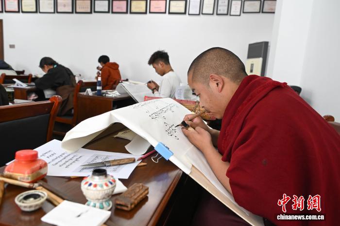 11月23日,第二屆“工巧杯”西藏工藝美術(shù)中青年高技能人才技藝大賽現(xiàn)場(chǎng)實(shí)操技能在拉薩市唐卡藝術(shù)博物館開(kāi)賽。本次大賽以“薪火相傳 守正創(chuàng)新”為主題,由284名選手來(lái)自西藏6(市)地的42個(gè)縣(區(qū)),涵蓋唐卡、雕塑、編織等36類工藝。據(jù)悉,西藏工藝美術(shù)行業(yè)現(xiàn)有2700余家市場(chǎng)主體、3.7萬(wàn)余名從業(yè)者,2024年產(chǎn)值超30億元(人民幣)。圖為參賽選手在寫(xiě)藏文書(shū)法。中新社記者 貢嘎來(lái)松 攝