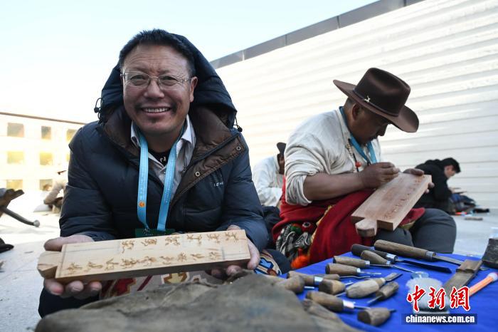 11月23日,第二屆“工巧杯”西藏工藝美術(shù)中青年高技能人才技藝大賽現(xiàn)場(chǎng)實(shí)操技能在拉薩市唐卡藝術(shù)博物館開(kāi)賽。本次大賽以“薪火相傳 守正創(chuàng)新”為主題,由284名選手來(lái)自西藏6(市)地的42個(gè)縣(區(qū)),涵蓋唐卡、雕塑、編織等36類工藝。據(jù)悉,西藏工藝美術(shù)行業(yè)現(xiàn)有2700余家市場(chǎng)主體、3.7萬(wàn)余名從業(yè)者,2024年產(chǎn)值超30億元(人民幣)。圖為參賽選手展示木雕作品。中新社記者 貢嘎來(lái)松 攝