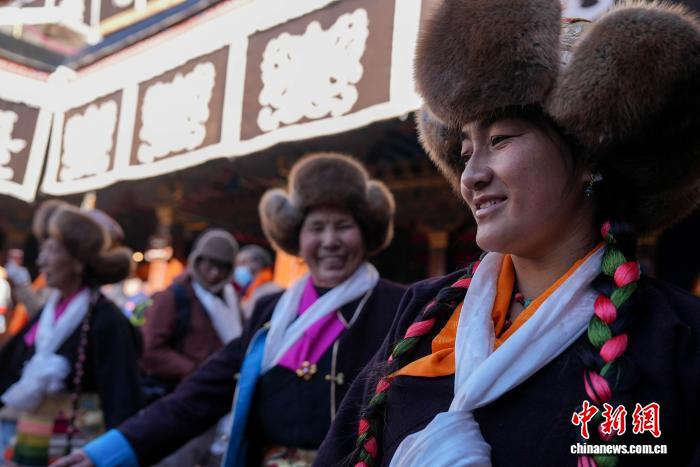 圖為白拉姆節(jié)臨近之際,信眾在大昭寺內(nèi)敬獻(xiàn)供品后載歌載舞的場景。貢確 攝