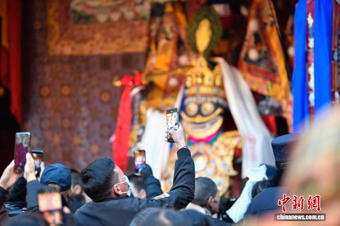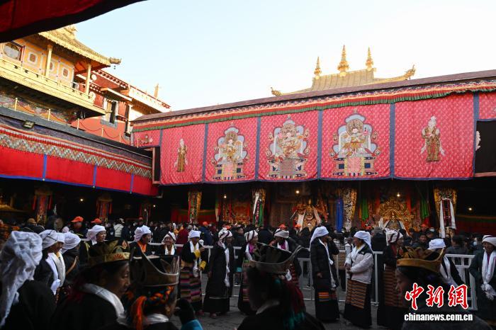 12月4日即藏歷十月十五日是藏族傳統(tǒng)的節(jié)日“白來(lái)日追”,俗稱“仙女節(jié)”、“白拉姆節(jié)”等。相傳藏傳佛教最高護(hù)法神之一班丹拉姆的女兒白拉姆,不顧母親的反對(duì)與赤尊贊私定終身,班丹拉姆一怒之下將赤尊贊趕到拉薩河南岸,規(guī)定二人僅每年的藏歷十月十五日相見(jiàn)。圖為信眾在大昭寺朝拜白拉姆像。中新社記者 貢嘎來(lái)松 攝