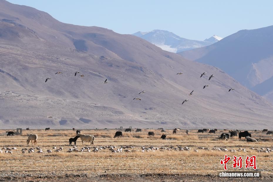 2025年1月7日,西藏定日發(fā)生6.8級(jí)地震,時(shí)隔近一年,12月24日,中新社記者探訪災(zāi)后重建。日喀則森嘎村的藏式新房錯(cuò)落有致,柏油路連通家家戶戶,屋頂太陽能熱水器整齊排列,炊煙裊裊間滿是生機(jī)。據(jù)悉,此次日喀則地震災(zāi)后重建覆蓋7縣47鄉(xiāng)鎮(zhèn)486村,2.2萬余戶重建民房、1.05萬余戶維修加固民房已全部竣工交付,受災(zāi)民眾喜遷新居。圖為森嘎村境內(nèi)的農(nóng)田里斑頭雁在覓食。中新社記者 貢嘎來松 攝