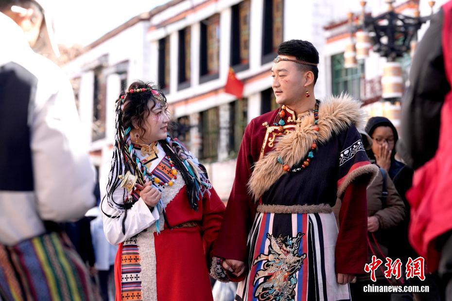 12月24日,游客在拉薩市八廓街拍攝藏服寫真。在第八輪“冬游西藏”活動(dòng)持續(xù)推動(dòng)下,不少游客選擇在冬季走進(jìn)西藏,感受雪域高原的獨(dú)特魅力。除了免費(fèi)游覽布達(dá)拉宮、羅布林卡等景區(qū),體驗(yàn)藏服寫真也成為大多數(shù)游客行程中的“必選項(xiàng)”。中新社記者 李林 攝