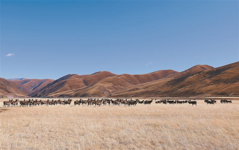 昌都市類烏齊縣保護(hù)區(qū)內(nèi)的馬鹿。記者 白瑪澤旺 攝