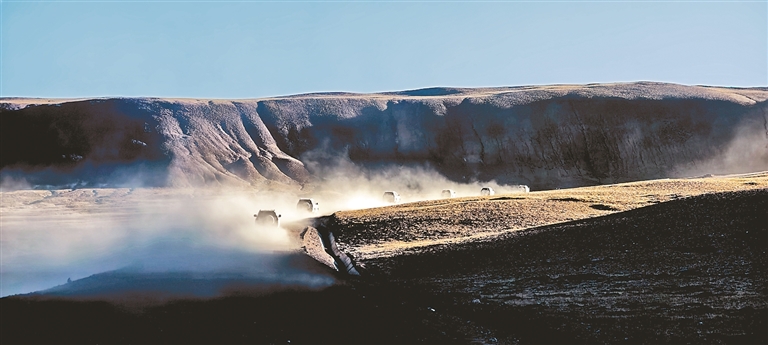 圖為巡護隊員們迎著清晨的陽光出發(fā)。通訊員 格桑 攝