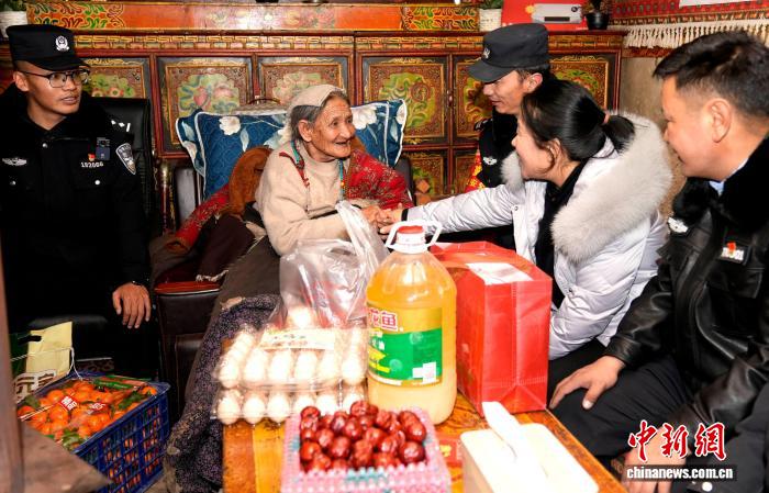 圖為那曲站派出所民警在羅馬鎮(zhèn)村民卡珠家里慰問。李林攝