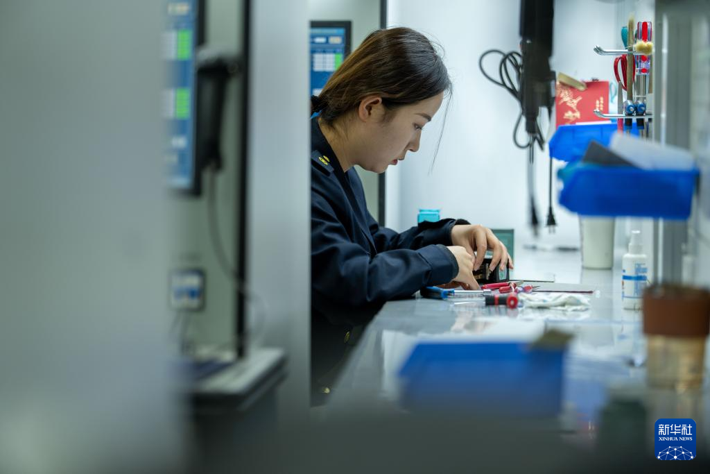 1月6日,拉薩基礎(chǔ)設(shè)施段電務(wù)專修車間繼電器檢修工區(qū)的信號(hào)工路東燕在檢修繼電器。新華社記者 旦增尼瑪曲珠 攝